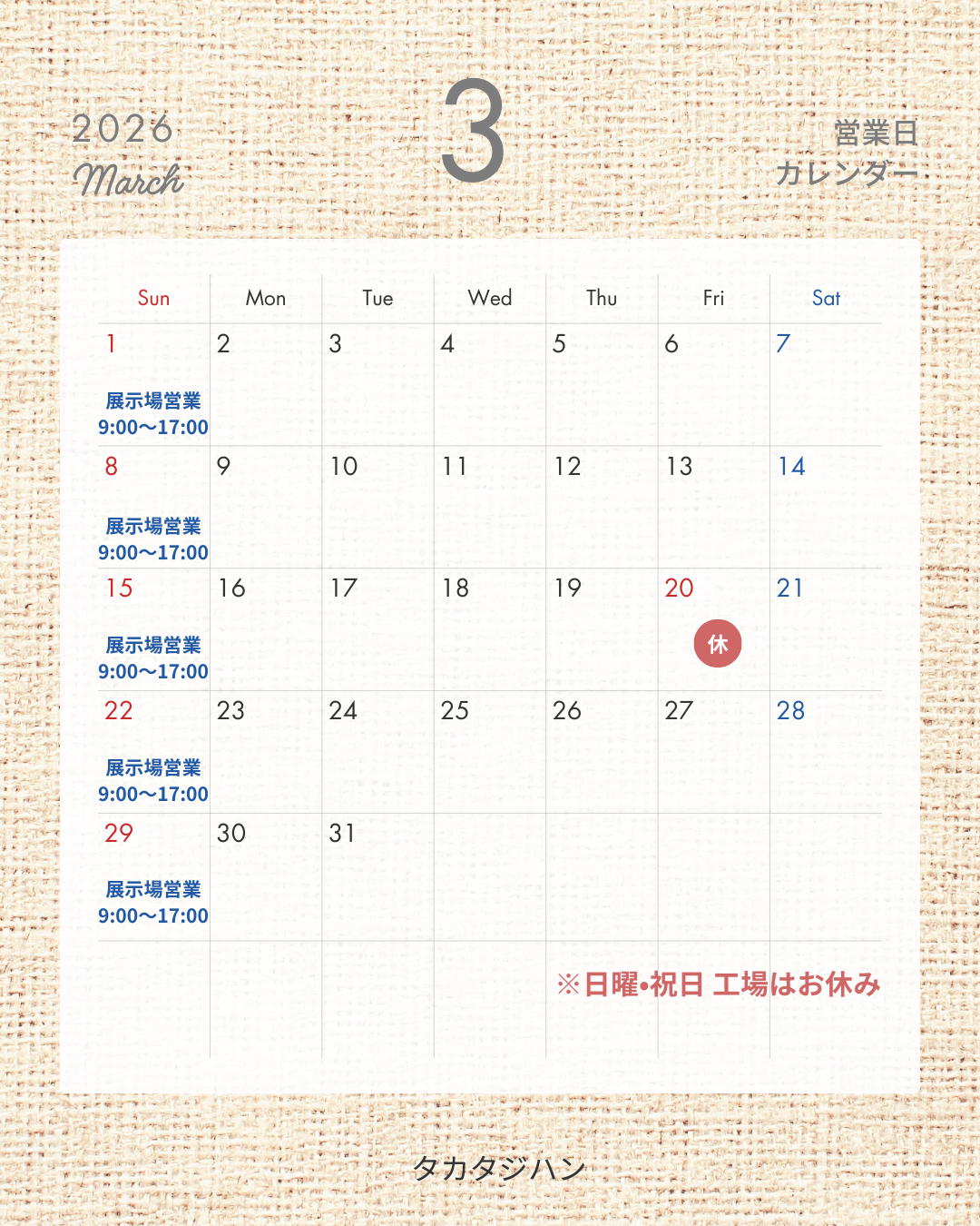 3月より営業日を見直すことにいたしました。